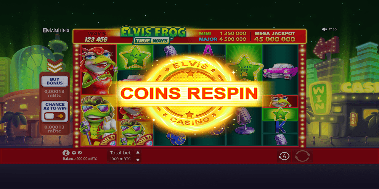 Elvis frog Trueways also offers players a Bonus Buy option, where they can buy a round of Free Spins or Coin Respin at a certain price shown on the button.