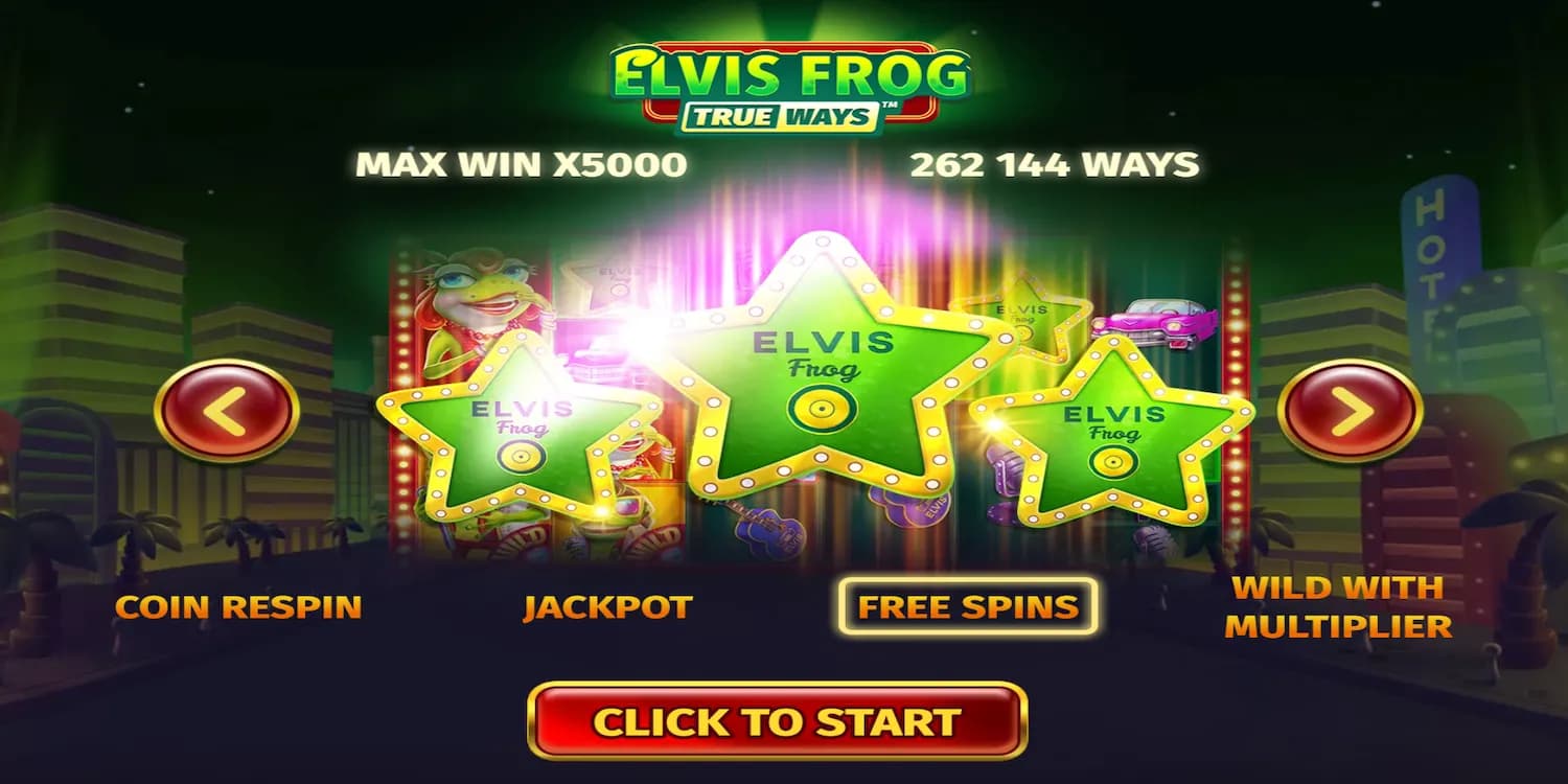 Experience Rock and Roll in every spin, as Elvis Frog hits the Vegas Strip. Get ready for a quirky twist in the Vegas scene with Elvis Frog. From the very first spin, experience the excitement of the gamble feature, and keep an eye out for only coin symbols triggering massive wins. The main game is packed with features from free spins to blazing reels, setting the stage for an unforgettable Vegas adventure. Bet amounts vary, offering flexibility for every player. And don't forget, Elvis Frog isn't just a game, it's a gateway to more games and endless entertainment in a high-stakes, high-fun setting.