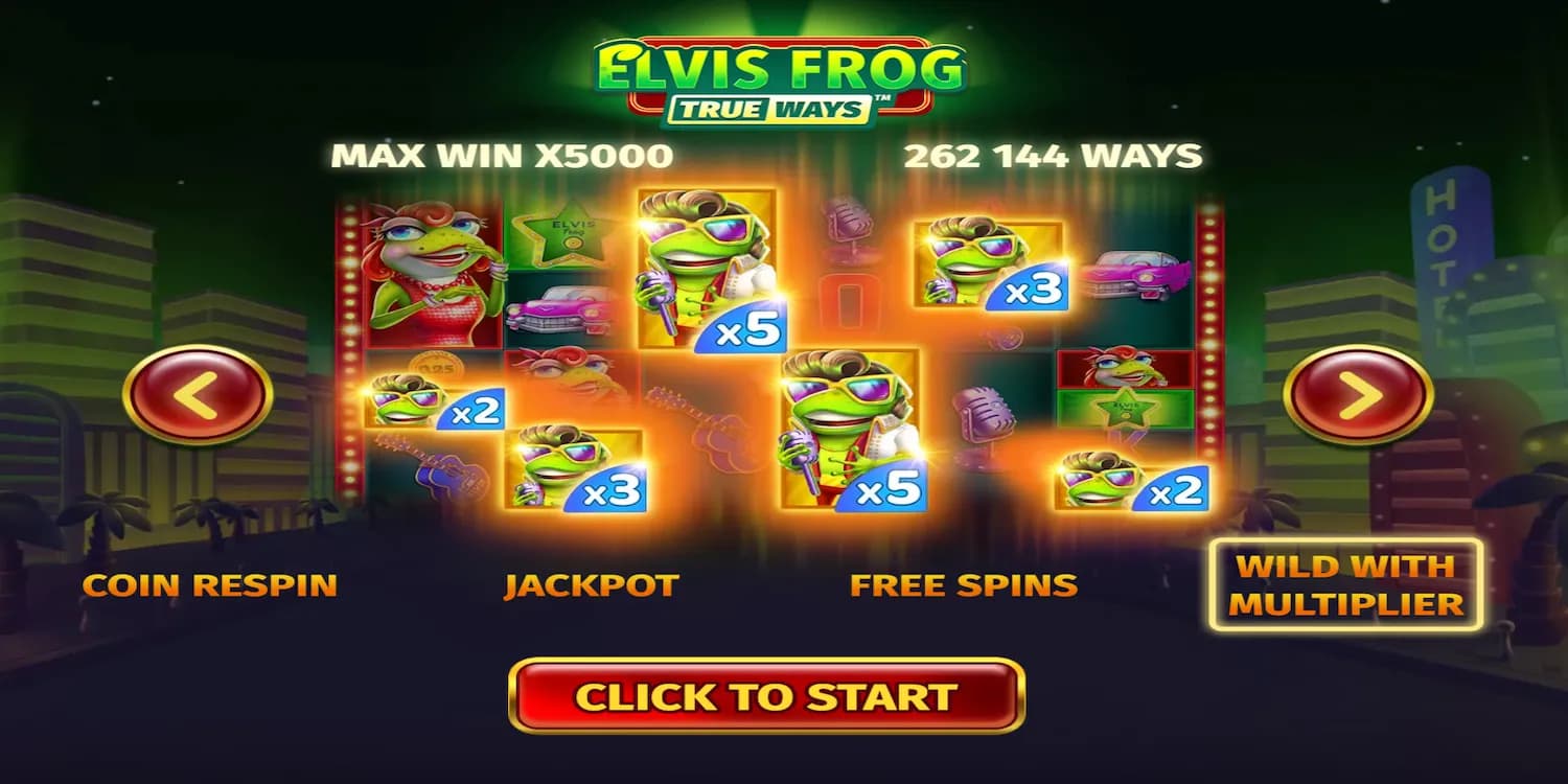 This time around, Elvis Frog has a lady friend to entertain you as well and brings exciting mechanics into play. With the new slot's TRUEWAYS mechanics, you'll have more chances to win than ever before. There are 262,144 different ways to win in total.