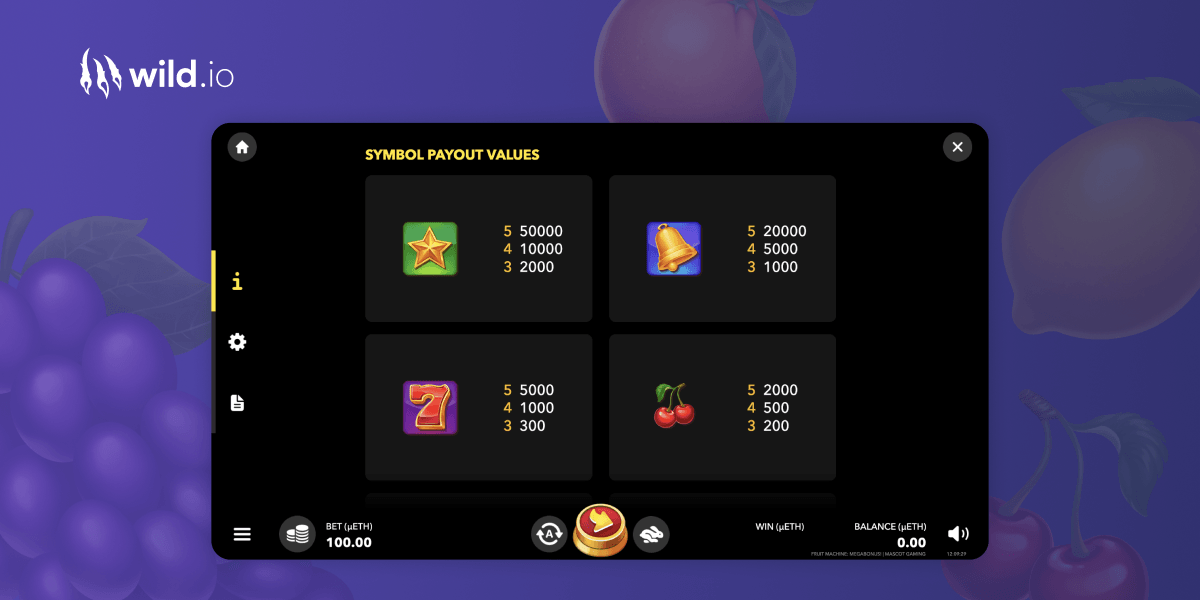 Game provider Mascot brings a new fruity fun challenge at our online crypto casino in the form of the Fruit Machine Megabonus slot!